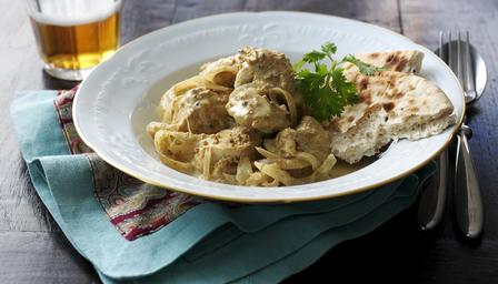 - Heat the oil in a deep frying pan and add the mustard seeds. When they start to pop and jump about in the pan, add the onion and garlic. Cook until they’re golden brown before adding the chicken and any extra paste from the marinade. Fry over a gentle heat for about 8 minutes before adding the coconut milk. Increase the heat slightly and bring to a simmer. Cook for a further 10-12 minutes until the sauce has thickened slightly before seasoning with salt if necessary and serving with rice or naan bread.
